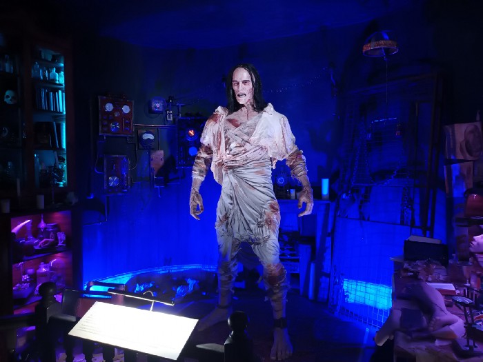 The theatre Room holds an impressive, to-scale, model of Frankenstein’s Monster having been faithfully created according to the brief description offered in Mary Shelley’s book. The top floors are dedicated to the legacy of Frankenstein and its influence on popular culture, starting with the 1910 silent film directed by J Searle. Dawley. Of course, when people think of Frankenstein’s Monster they think of the version played by Boris Karloff in the 1931 film. This green-skinned creation with bolts coming out of its neck is the image immortalised in popular culture and, as the retrospective shows, has been used in various forms around the world.