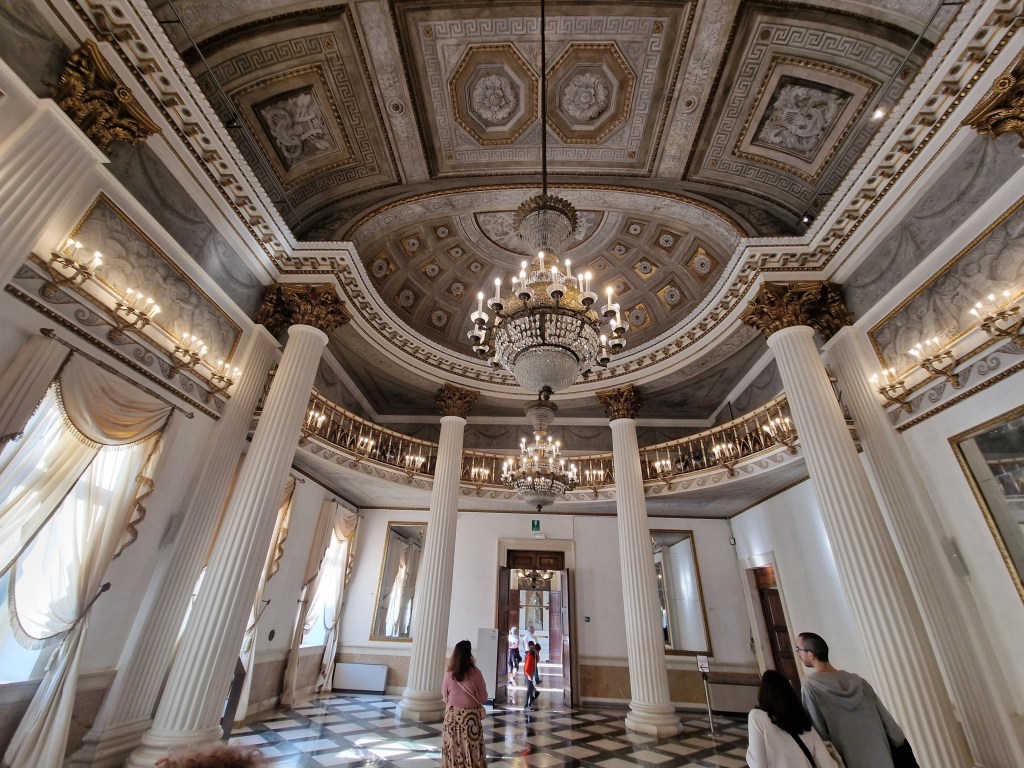 Starting in the courtyard, I took time to explore the architecture. The giant’s staircase was one of the standouts due to the two statues of Mars and Neptune who guard it. Created by Sansovino (b.1486 – d.1570), they are symbolic of Venice’s naval and land power and make quite a striking pair.